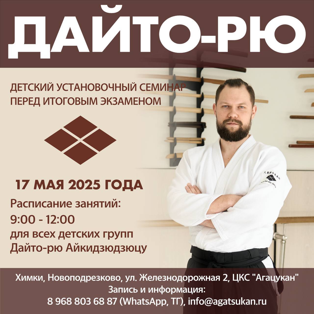 Приглашаем всех юных учеников Дайто-рю на систематический контрольный семинар. Это не просто тренировка — это возможность подкорректировать технику, устранить ошибки и максимально настроиться на успешную сдачу самого главного экзамена года.
